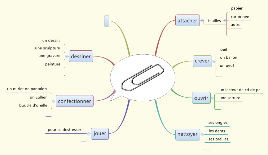 Exemple de carte brouillard sur les utilisations possibles d'un trombone (cliquez sur l'image pour l'agrandir)