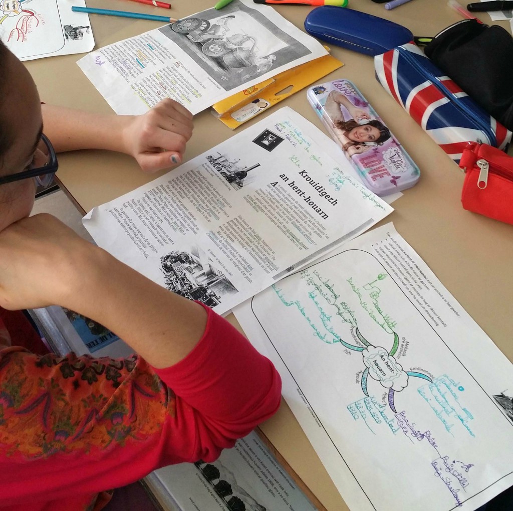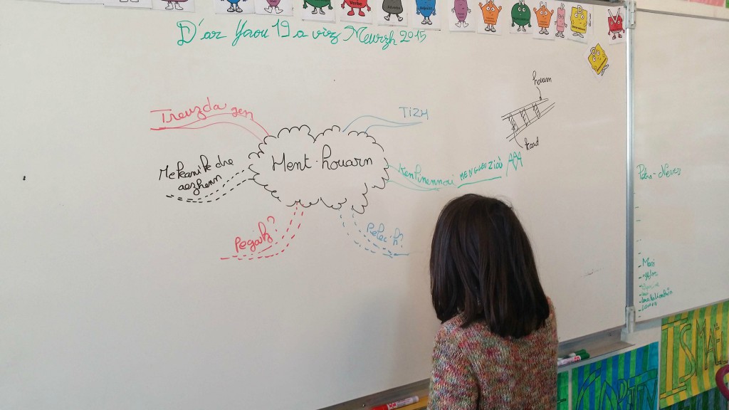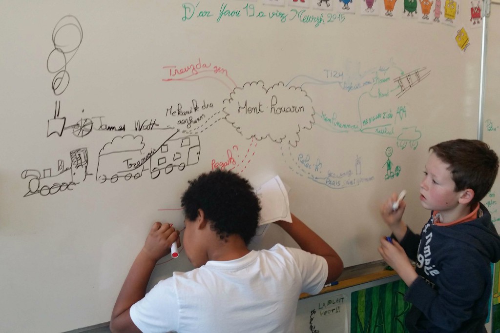 Il y a quelques semaines, je suis de nouveau intervenu à l'école Diwan de Nantes pour initier des élèves de cycle 3 au mind mapping. Rodolf, leur professeur, a relaté cet événement sur son blog de classe. J'ai suivi quasiment le même programme que lors de ma dernière venue dans cette école. J'avais d'ailleurs relaté cette expérience dans un précédent billet sur l'introduction de la carte mentale en classe. Pour résumer, j'ai proposé aux élèves de réaliser une carte de mots autour de leur passion et une carte mots-clés plus pictos sur leur maison.