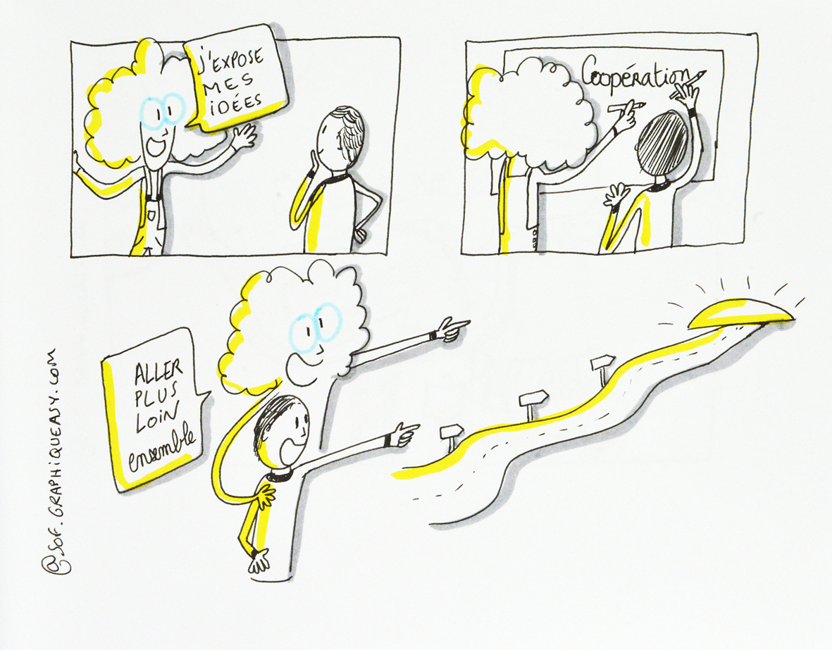 Cet article écrit par Claúdia Eusébio a été illustré par Sophie Lepenher. Sophie a suivi notamment nos formations Mind Mapping et Sketchnoting. Et elle est en passe de devenir facilitatrice graphique !