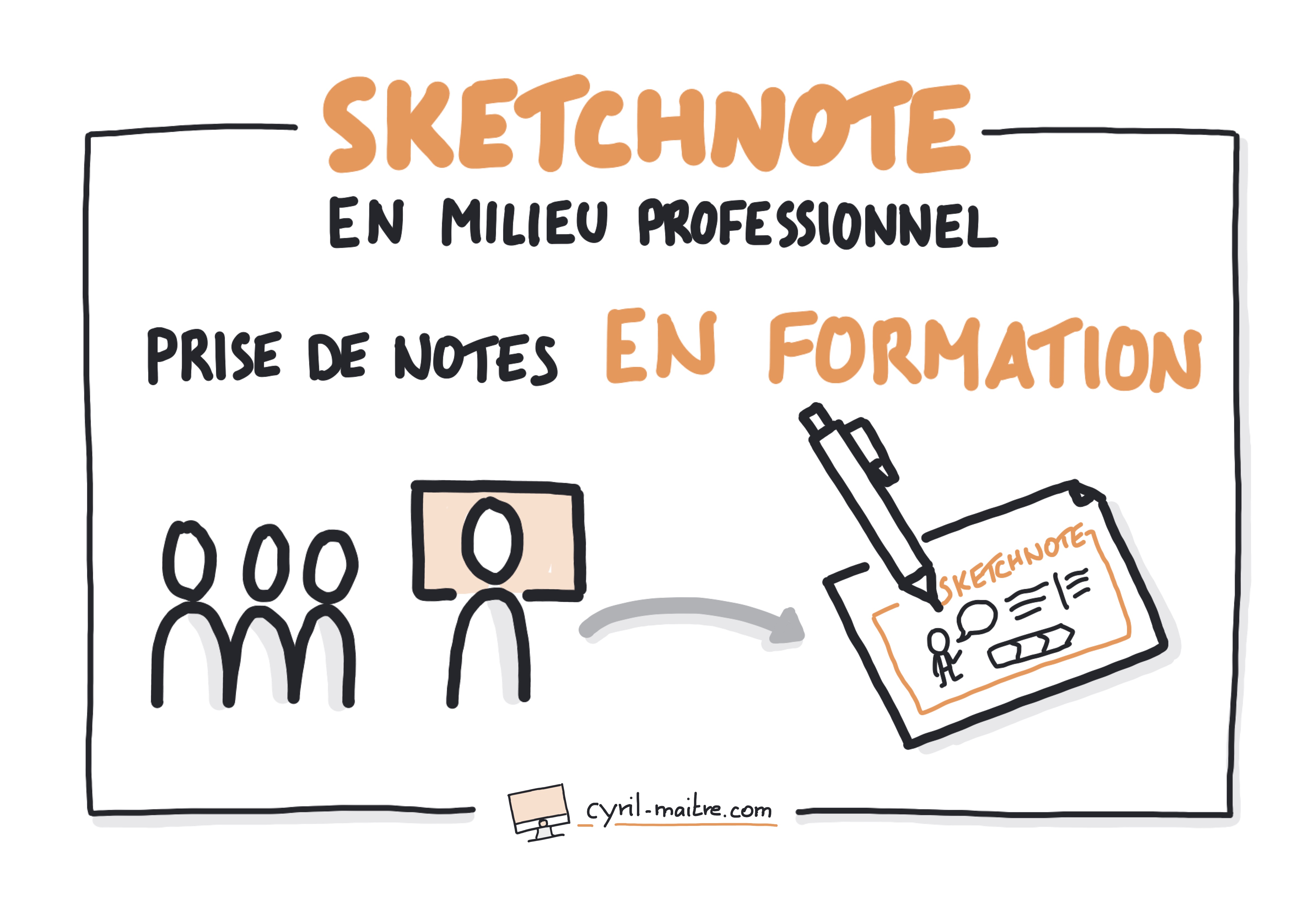 Pour être plus précis et plus pragmatique, voici quelques applications pratiques du sketchnoting en situation pro que j'ai pu expérimenter ou faire expérimenter à mes apprenants.