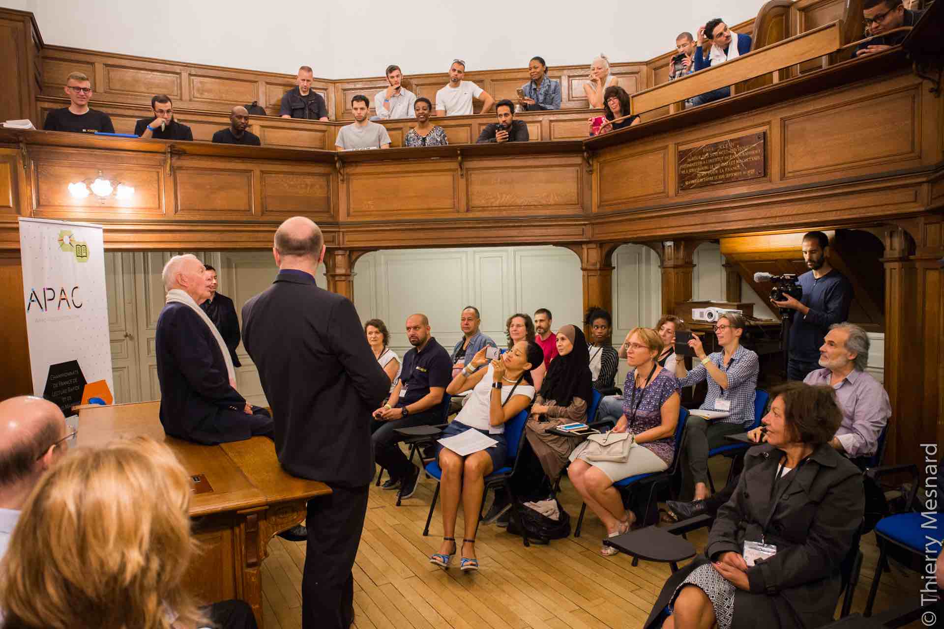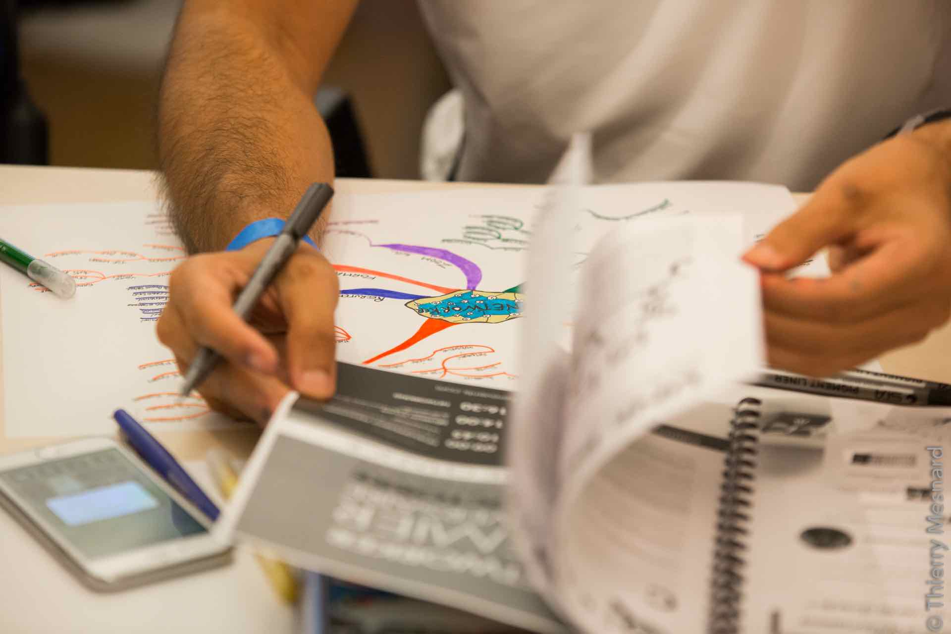 C'est parti pour cette première épreuve de mind mapping. Au programme, une conférence de Tony Buzan traduite par Michel Wozniac sur l'histoire du mind mapping. Et un temps de finalisation des cartes de 30 minutes.