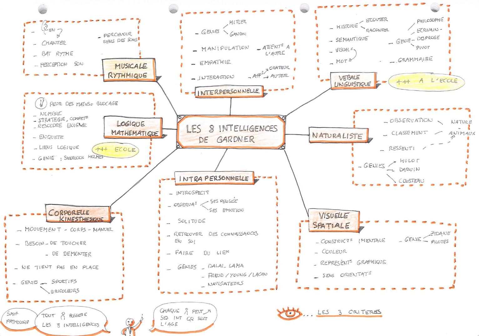 Dans le cas présent, ce picto renvoie au sketchnote suivant qui présente les 8 types d'intelligences selon Gardner.