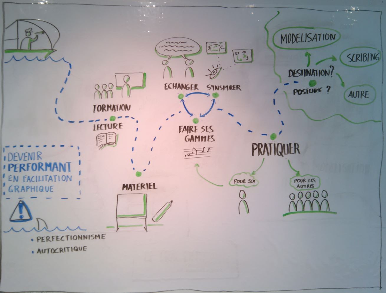 Par contre, même si leurs conseils pendant les débriefs étaient pertinents et très utiles, j’aurais vraiment apprécié de pouvoir les observer à l’œuvre en situation de scribing. Je trouve très efficace de pouvoir observer des experts en action pour « capturer » leurs tours de mains ou leurs bonnes pratiques.