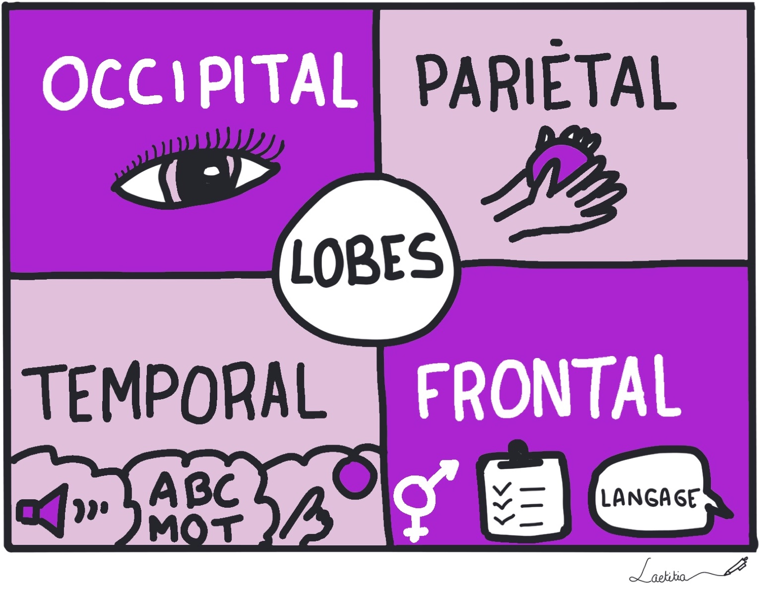 pariétal, occipital, et en dessous des trois le temporal.