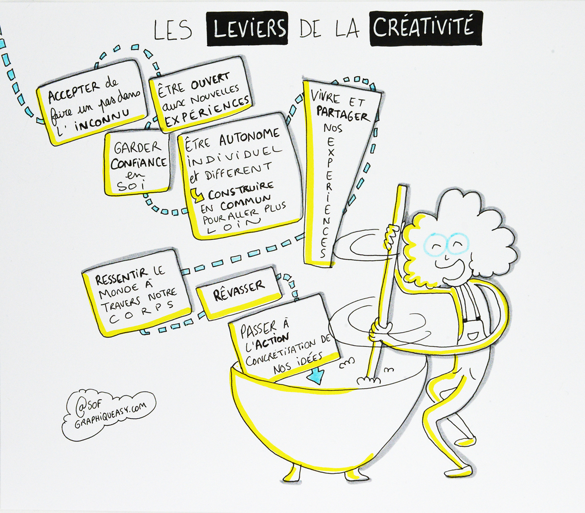 Cet article écrit par Claúdia Eusébio a été illustré par Sophie Lepenher. Sophie a suivi notamment nos formations Mind Mapping et Sketchnoting. Et elle est en passe de devenir facilitatrice graphique !