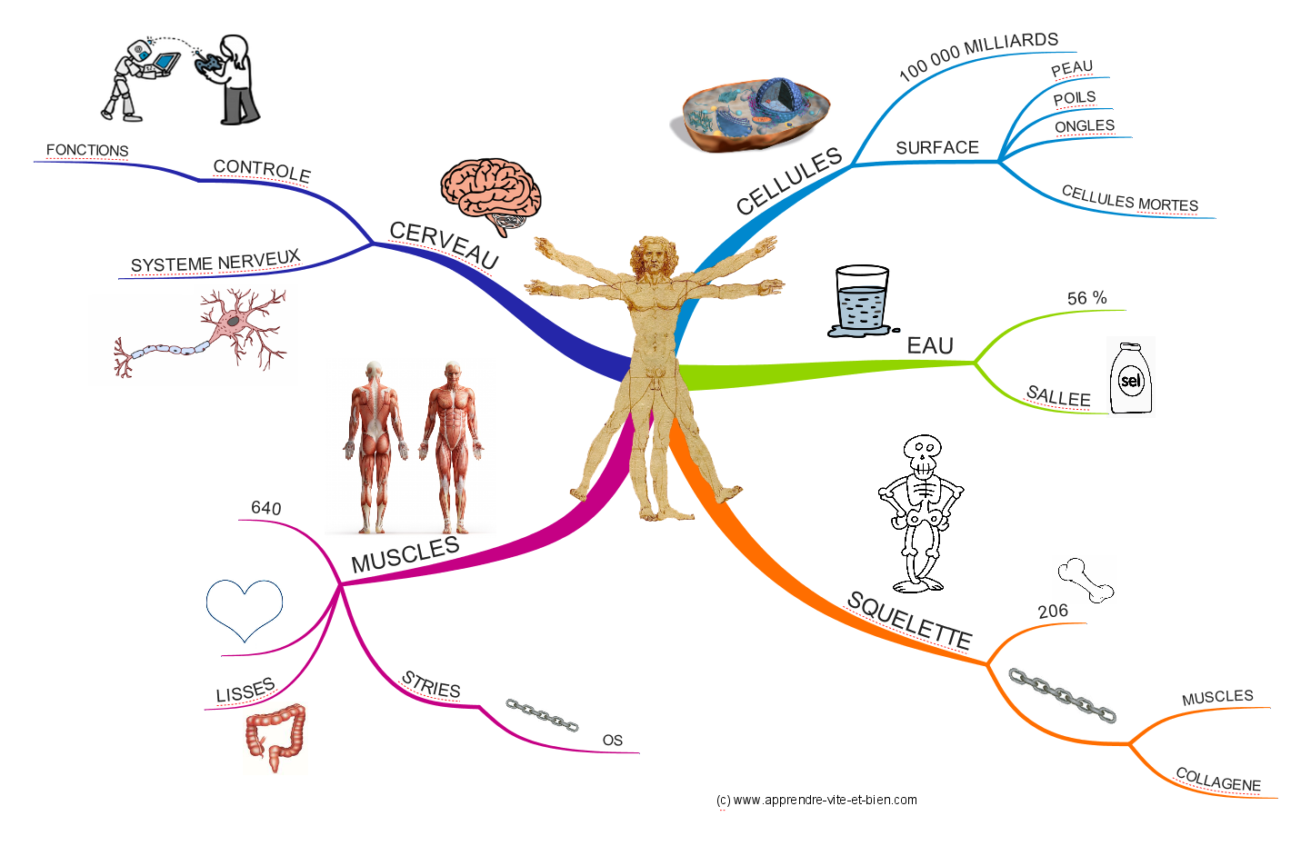 Carte mentale réalisée avec imindmap sur le corps humain.