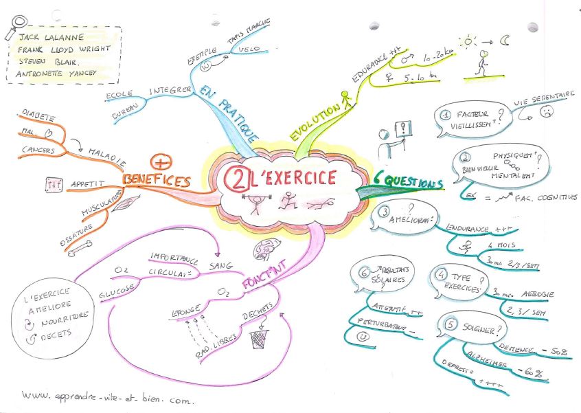 Mind Map 91: 2nde Loi du Cerveau: l'Exercice Physique. Il y a quelque temps, j'avais publié les cartes de prélecture des 12 Lois Du Cerveau de John Médina, un ouvrage absolument incontournable. Les 12 lois du cerveau de John Medina.Voici la carte du second chapitre: l'exercice physique. Mind map de la 2ème loi du cerveau.Cyril Maitre Twitter Facebook LinkedIn Email