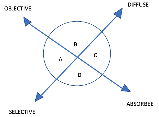 ● L’attention diffuse est ouverte. Elle se partage entre les stimulis extérieurs et intérieurs. La vision est panoramique.