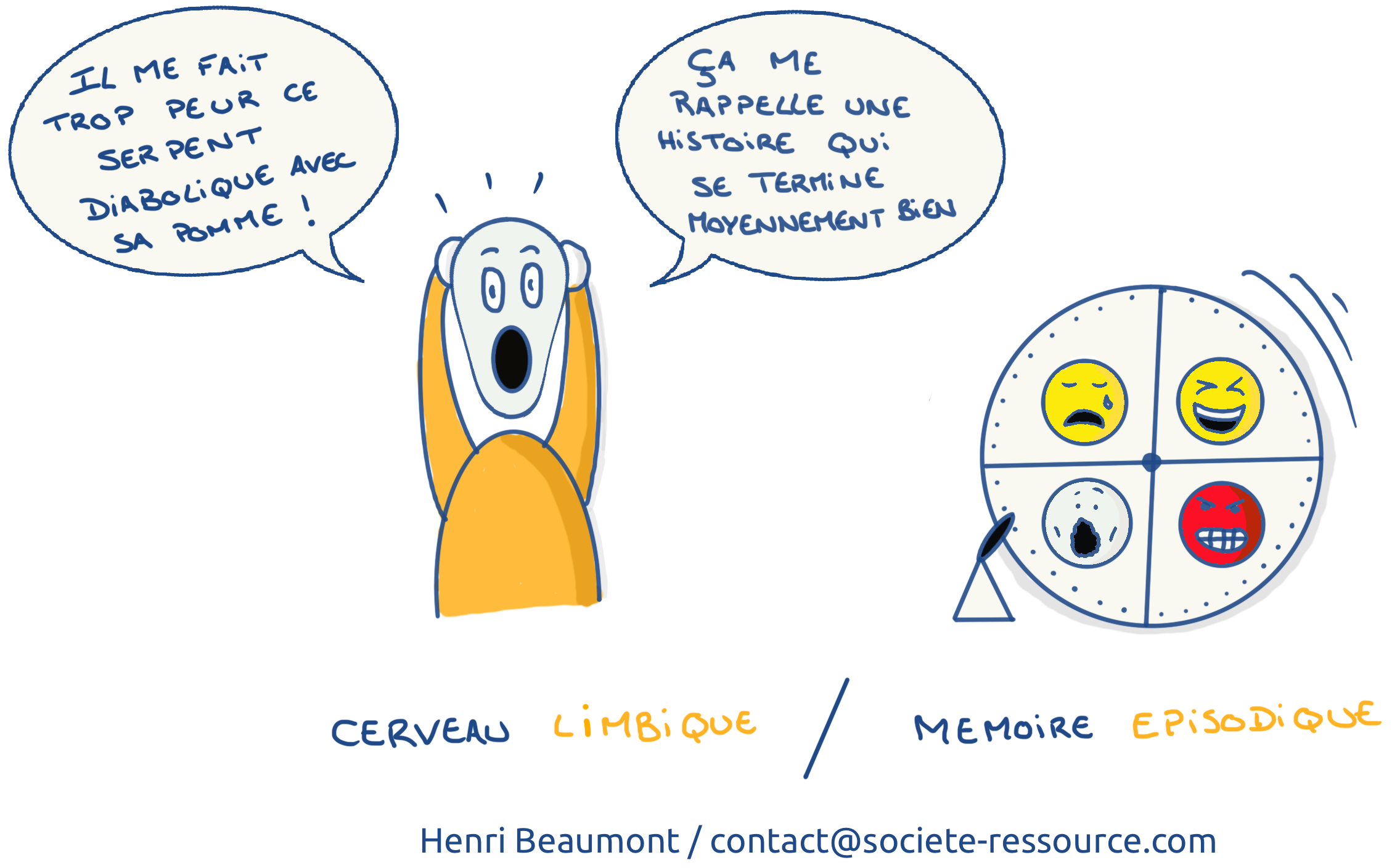 En simplifiant un peu, le cerveau mammifère s’occupe des émotions. C’est lui qui nous pousse à la recherche de plaisir par exemple. Il est très important pour la mémorisation.