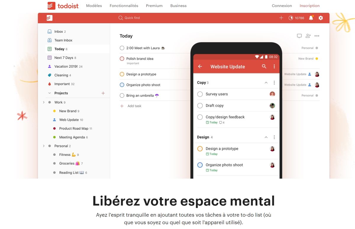 Todoist : un autre outil très simple pour gérer vos listes de tâches. C’est celui que j’utilise en ce moment. Il y a peu j’utilisais toodledo qui est très (trop ?) complet. J’ai changé pour Todoist parce que je souhaitais quelque chose de plus simple et de plus convivial. Todoist apporte toutes les fonctions dont vous avez besoin, à travers une belle interface. Essayez-le, l’interface est très intuitive et ne requiert pas la lecture d’un manuel d’utilisation. Il ne possède pas une tonne de fonctionnalités, mais c’est ce qui fait tout son intérêt.