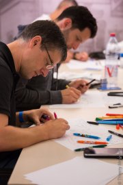 C'est une épreuve intéressante, j'adore faire de la prise de note en live. Mais depuis un peu plus d'un an je pratique essentiellement le sketchnoting. Il me faut donc réajuster rapidement ma pratique. D'autant que je suis venu un peu en "touriste". Par l'intermédiaire de Nicolas Lisiak, je me suis inscrit 6 jours avant alors que j'étais en vacances au bord de la mer. Je n'ai eu que 3 jours pour préparer à la fois la certification d'arbitre international (voir épisode 1) et ce Championnat.