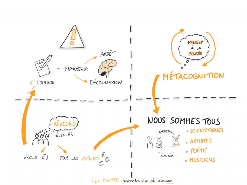 - l'importance de la métacognition (prendre conscience de nos pensées et de notre fonctionnement cérébral)