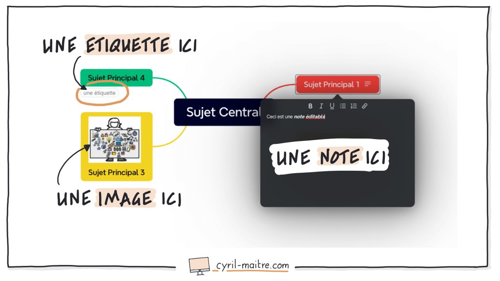 - Les notes : pour détailler une idée sans surcharger la carte.