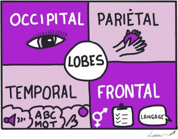 Chaque hémisphère est subdivisé en quatre parties qui sont les quatre lobes cités plus haut.