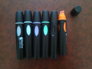 Pour écrire et dessiner en noir je me suis procuré le Outliner N°1 et pour la couleur j’ai des marqueurs Big One. Les BIg One sont ont une pointe biseautée énorme de 6 à 12mm et sont disponibles en 25 couleurs différentes! L’encre de l’Outliner à la particularité de ne pas ”baver” lorsqu’on repasse dessus avec un marqueur de couleur comme les Big One. En plus, tous ces marqueurs d’excellente qualité sont rechargeables grâce à des flacons d’encres. Ils ne sont disponibles que sur commande sur le site de Neuland France.