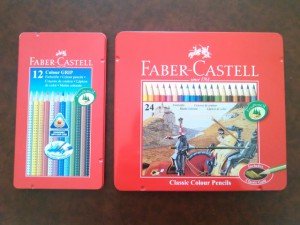 Je possède 2 boites de Faber Castell. Une de 24 crayons classiques et une de 12 crayons aquarellables qui permettent de créer des effets visuels intéressants. Mais pour le moment je n’utilise pas trop ces derniers.