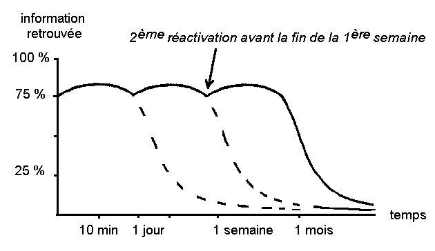 Je vous passe les détails du pourquoi, mais il est aussi nécessaire de réactiver au bout d’une semaine puis d’un mois. Après ce délai, les informations sont stockées dans la mémoire à long terme. Elles seront alors disponibles via une méthode correcte de rappel.